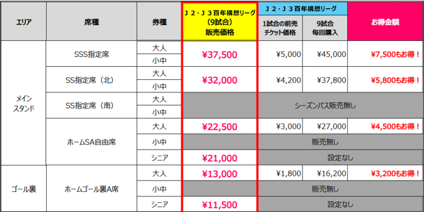 ■シニア料金はメインスタンドSA席、ゴール裏A席のみ