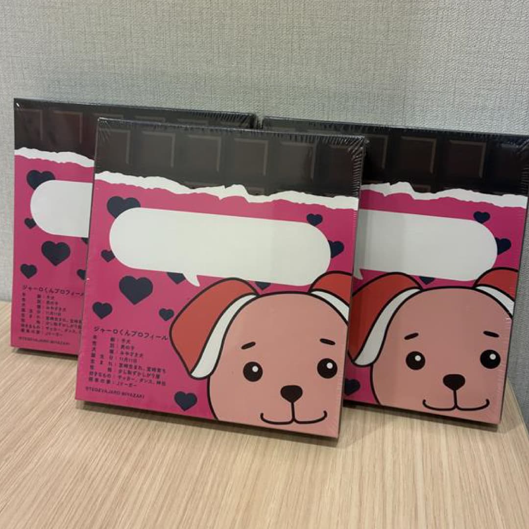 お土産やプレゼントとして受け取ってくださった方にも、本犬のことを知っていただけるよう、さりげなくプロフィールも記載しております。