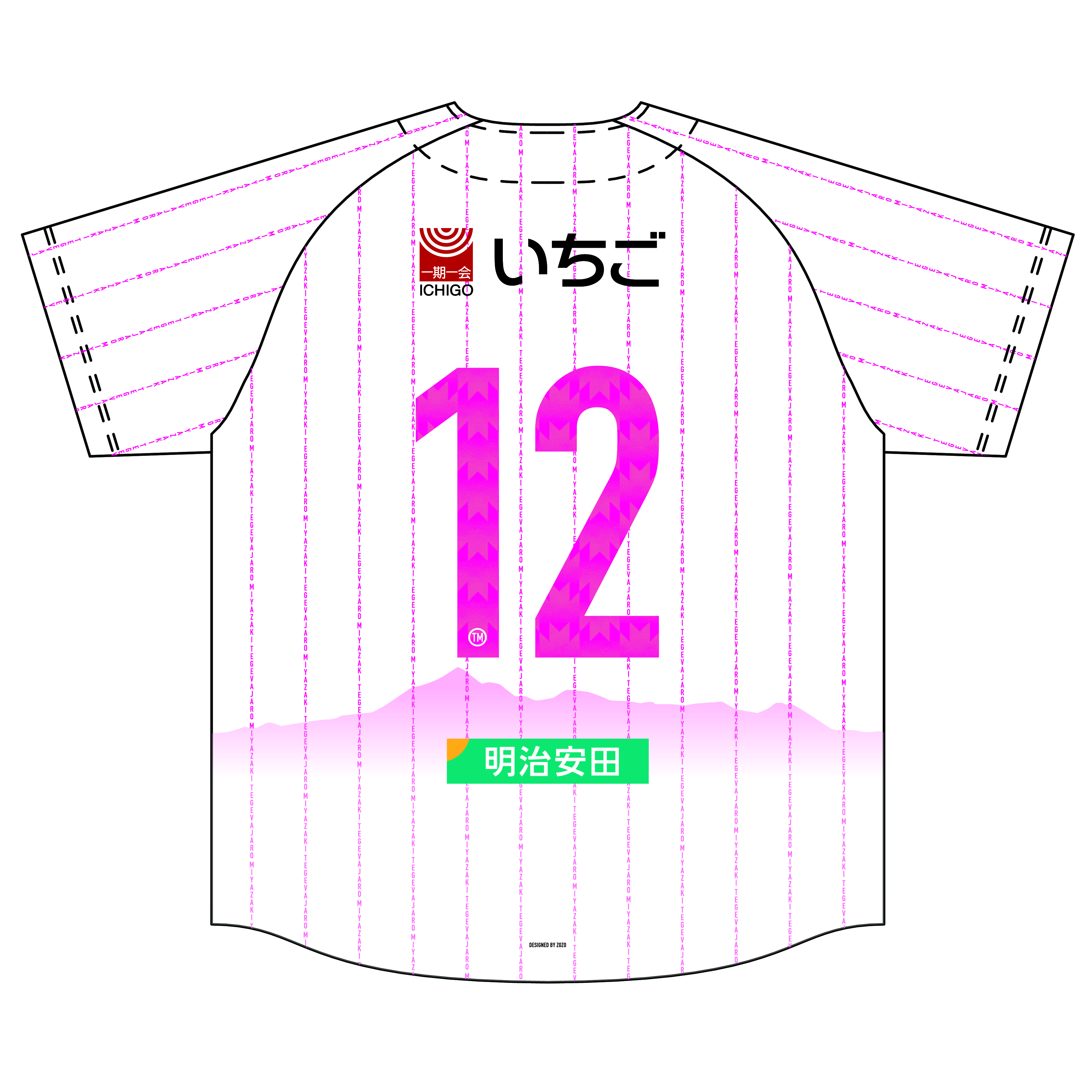 袖には、2027宮崎国スポ・障スポの開催をアピールする「日本のひなた宮崎県」のロゴ、「ベースボールシャツ」を提供いただくいちご株式会社のロゴを、背面に霧島連山、そしてKUROKIRI STADIUMを配置し、この特別な試合を彩るアイテムとして株式会社ZOZO様にデザインいただきました。
